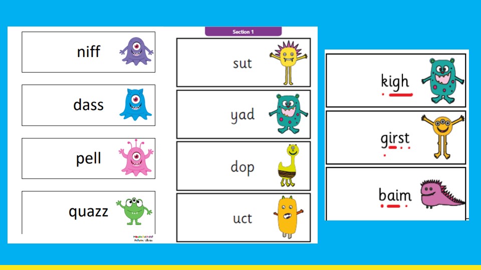 Alien words are words that are not real and are designed purely to test the children on their ability to identify the sounds they have been taught.