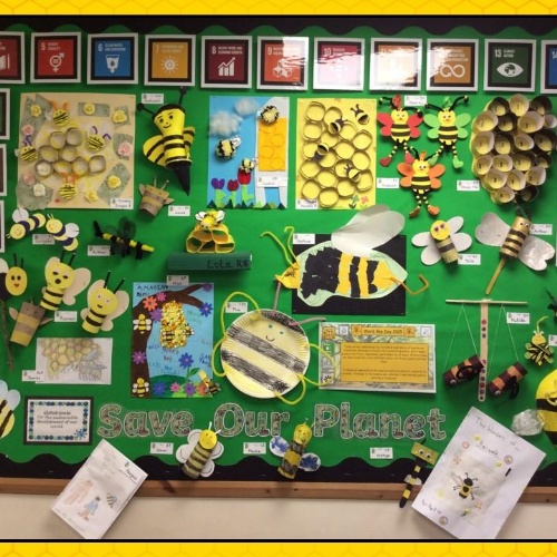 Children from across the school have been busy designing their entries for the Britannia Eco Code competition. The Eco Code entry chosen was designed by Phoebe and Oscar in 6JW and will be displayed on the Eco Display board as well as in every classroom from September. Well done Phoebe and Oscar!